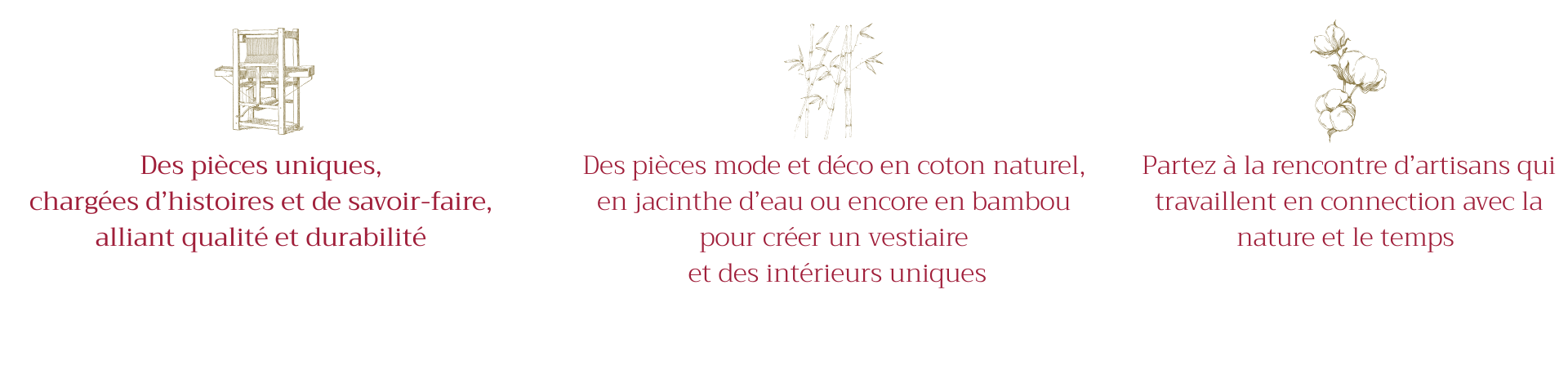 Nous travaillons avec des matériaux naturels pour la réalisation de pièces respectueuses de l'environnement et qui de part leur processus de fabrication nous pousse à une consommation plus raisonnable et durable