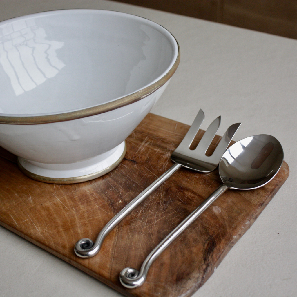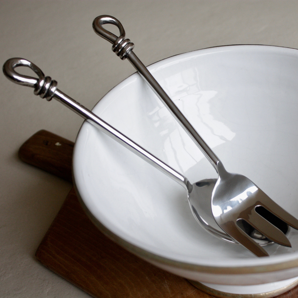 Ajoutez une touche de sophistication à vos repas avec nos couverts à salade en acier inoxydable fabriqués à la main. Conçus pour les amoureux du design minimaliste et durable, ces couverts allient savoir-faire artisanal et matériaux de haute qualité. Chaque pièce est soigneusement façonnée à la main par des artisans experts, garantissant une finition impeccable et une solidité à toute épreuve.