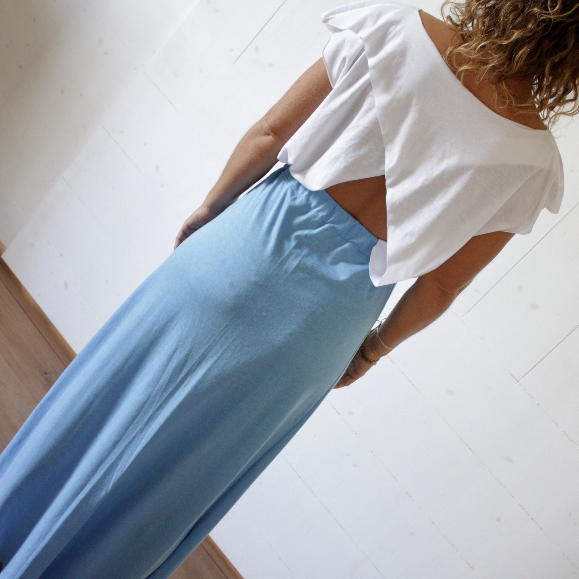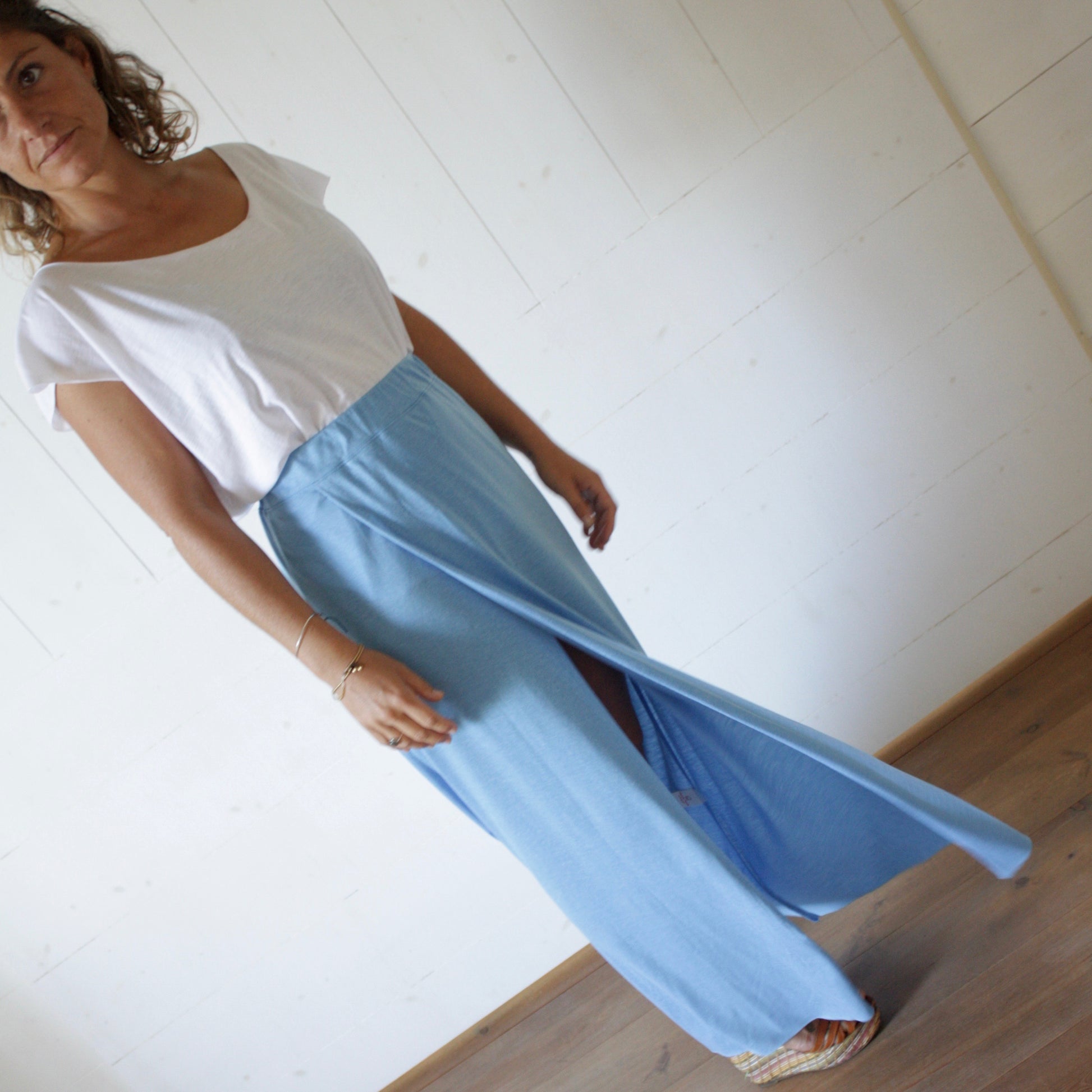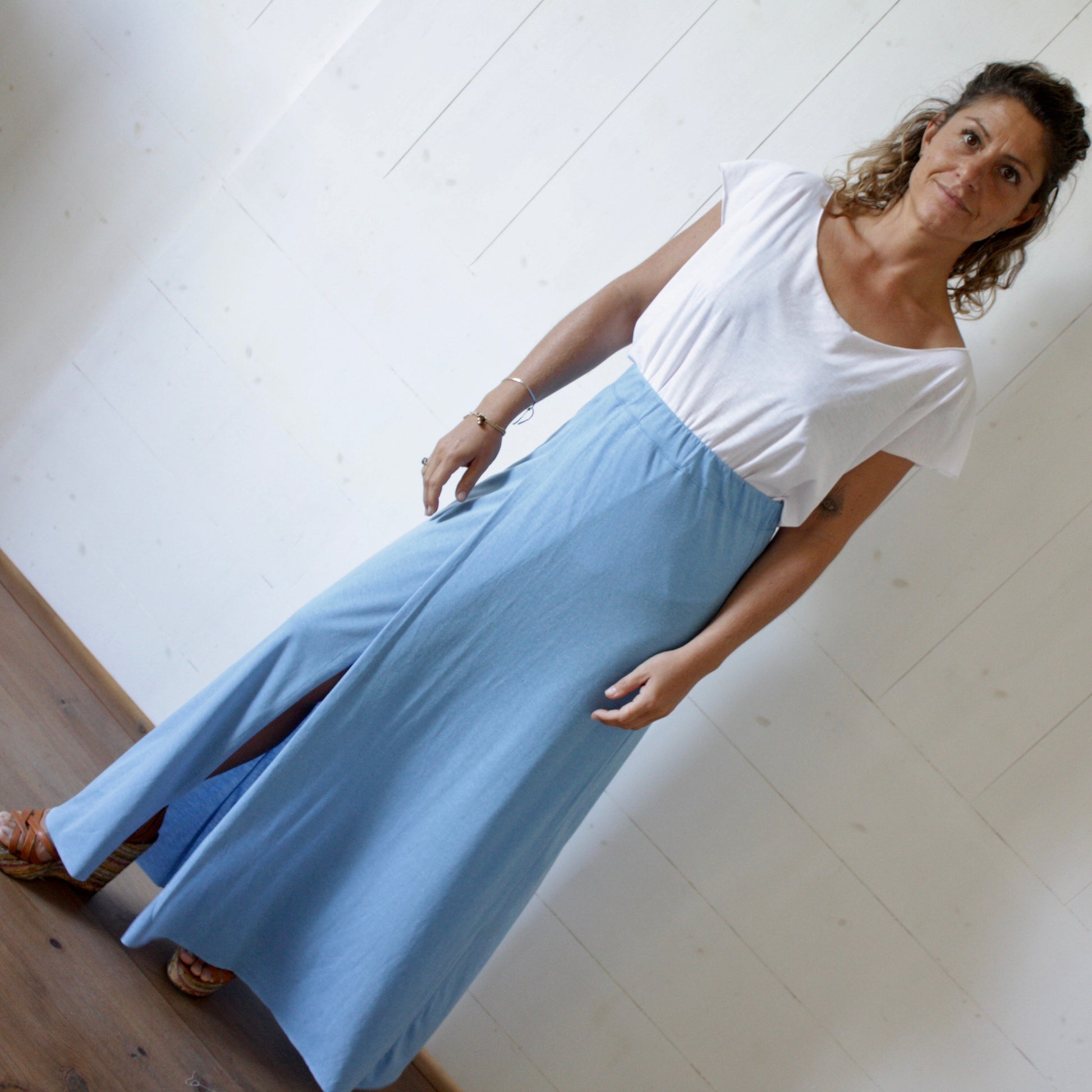 Elle fait partie de notre collection Warunee. Des essentiels avec un tissu léger et tout doux. La jupe fendue un classique indémodable.