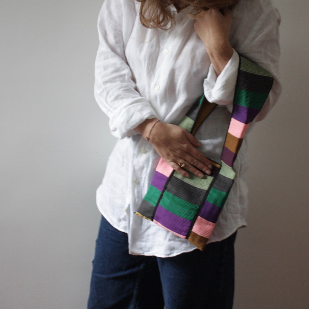 Ce mini sac en soie est bien plus qu'un simple accessoire de mode ; c'est le sac le plus mignon du monde, chic, joli, élégant et unique. Fabriqué à la main avec amour et savoir-faire par nos artisans, chaque détail de ce sac témoigne de la qualité et de l'attention portée à sa création. Laissez-vous séduire par son allure sophistiquée et sa texture unique en soie.